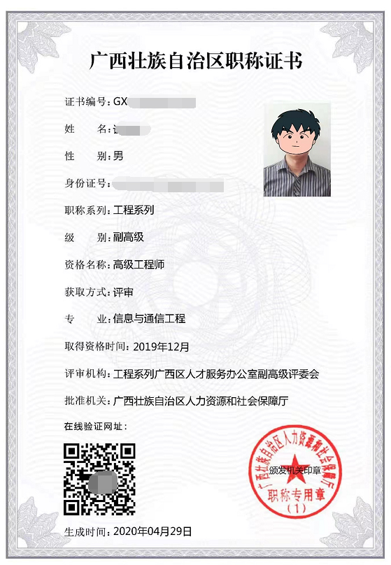 6、證書(shū)領(lǐng)取時(shí)間: 廣西各地市職改辦在網(wǎng)上公示職稱(chēng)評(píng)審結(jié)果1個(gè)月后。